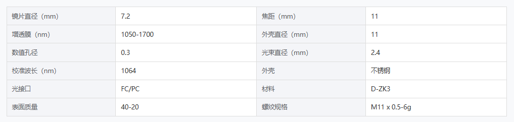 DIMENSION维度 FC1072011C16 光纤准直器