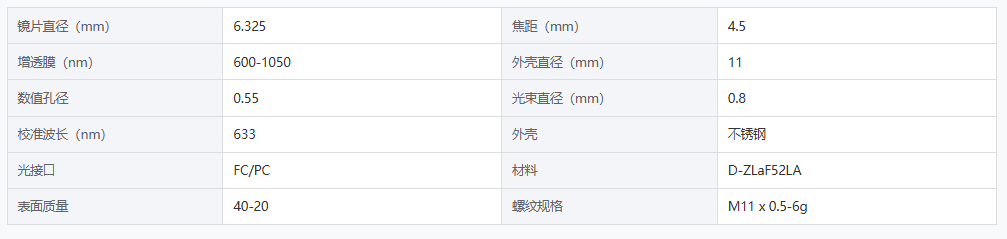 DIMENSION维度 FC1632045B13 光纤准直器