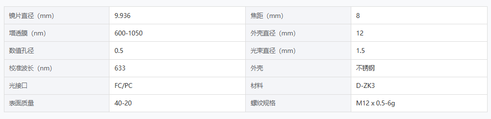 DIMENSION维度 FC1993008B13 光纤准直器