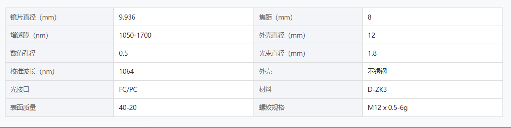 DIMENSION维度 FC1993008C16 光纤准直器