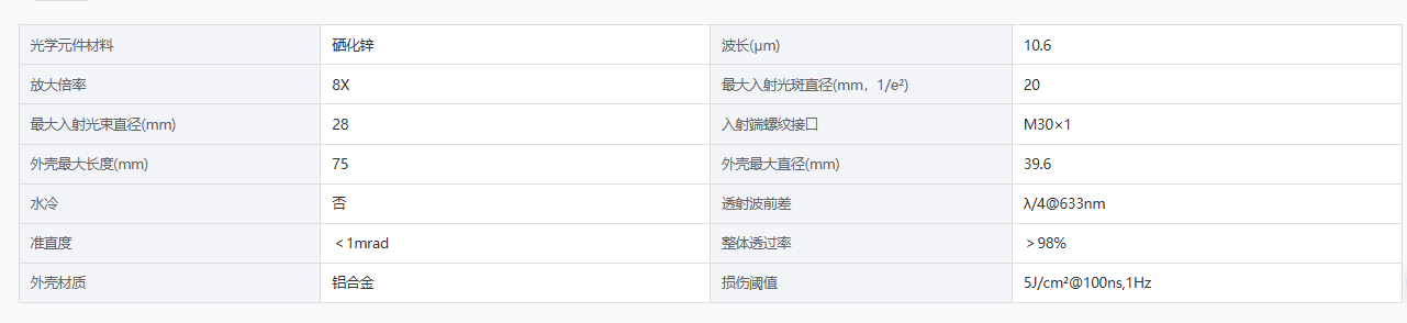 DIMENSION维度 BE-8X-106-H 高功率中红外激光扩束镜 手机/微信:13682357549 13246646513 QQ:672776553 564600083 1903656788 Email:672776553@qq.com 564600083@qq.com