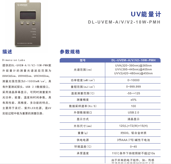 DIMENSION维度 DL-UVEM-A-V-V2-10W-PMH UV能量计