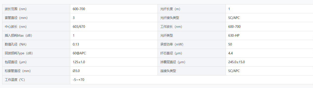 DIMENSION维度 DL-SMPC-630-670-H6-1-L3-SA 单模光纤跳线