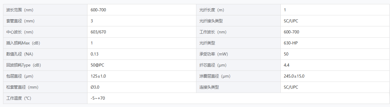 DIMENSION维度 DL-SMPC-630-670-H6-1-L3-SU 单模光纤跳线