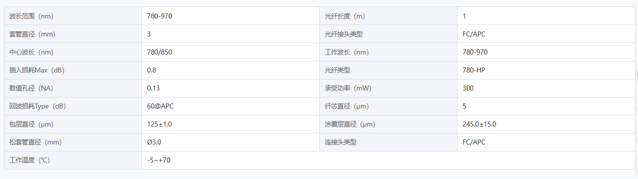DIMENSION维度 DL-SMPC-780-850-H7-1-L3-FA 单模光纤跳线