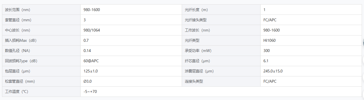 DIMENSION维度 DL-SMPC-980-1064-H1-1-L3-FA 单模光纤跳线