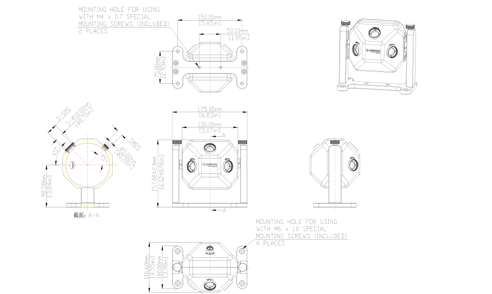 DIMENSION维度 ISP-4×3-P-A 通用标准型积分球
