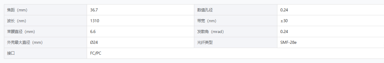 DIMENSION维度 FC5367101 定焦大光束准直器