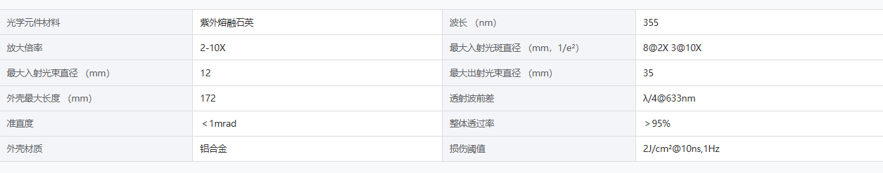 DIMENSION维度 BE-2-10X-355-V 变倍扩束镜