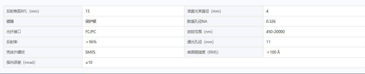 DIMENSION维度 FC300401551 宽光谱准直器