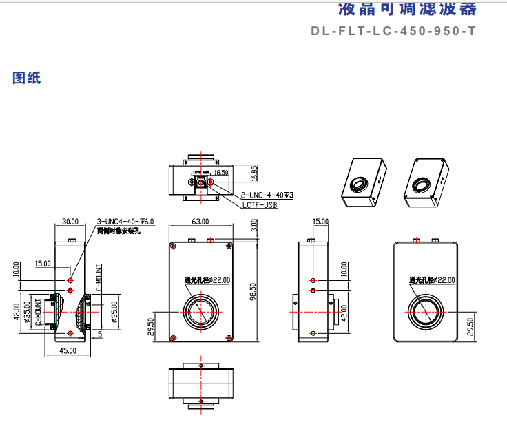 DIMENSION维度 DL-FLT-LC-450-950-T 液晶可调滤波器 手机/微信:13682357549 13246646513 QQ:672776553 564600083 1903656788 Email:672776553@qq.com 564600083@qq.com