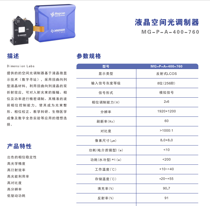 DIMENSION维度 MG-P-A-400-760-8 液晶空间光调制器 手机/微信:13682357549 13246646513 QQ:672776553 564600083 1903656788 Email:672776553@qq.com 564600083@qq.com