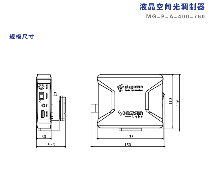DIMENSION维度 MG-P-A-400-760-8 液晶空间光调制器