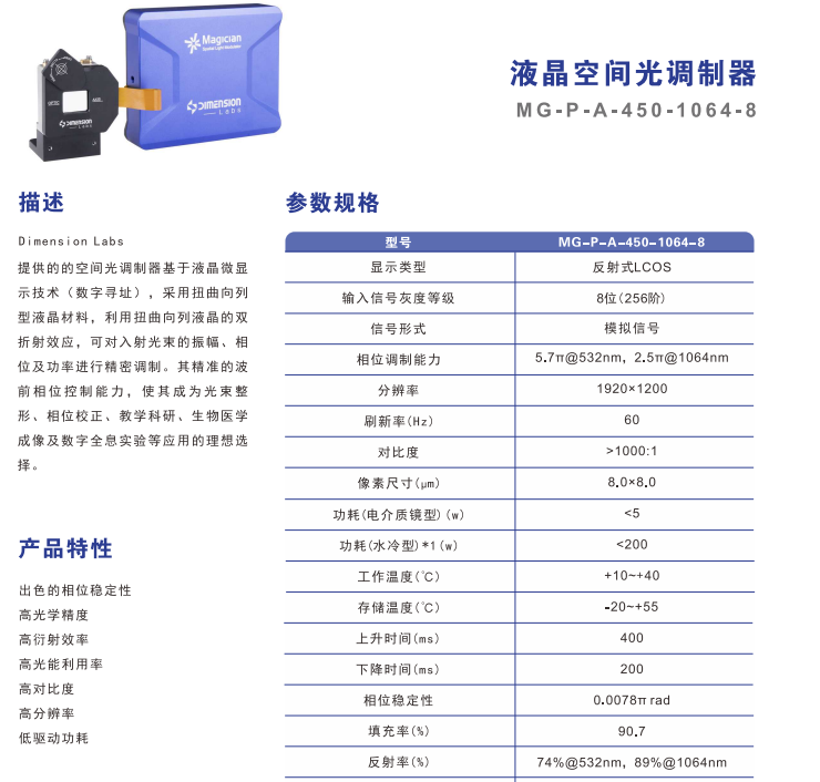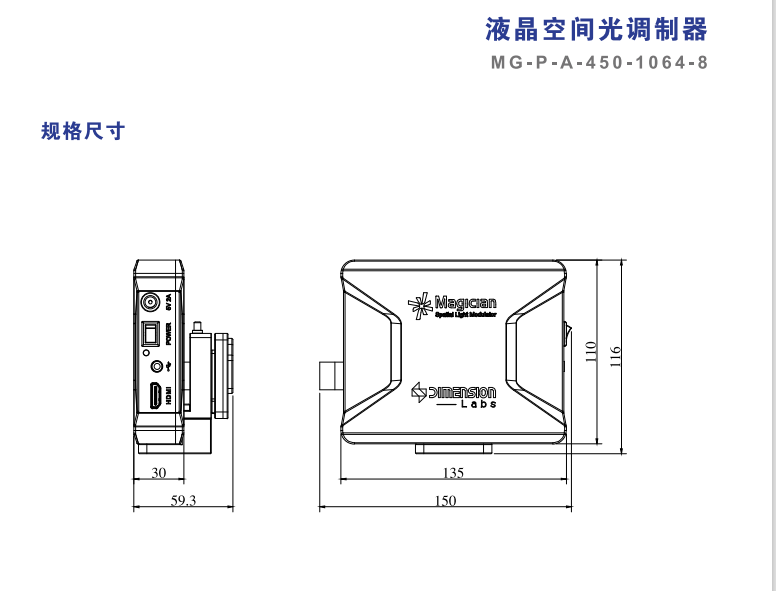 DIMENSION维度 MG-P-A-450-1064-8 液晶空间光调制器 手机/微信:13682357549 13246646513 QQ:672776553 564600083 1903656788 Email:672776553@qq.com 564600083@qq.com