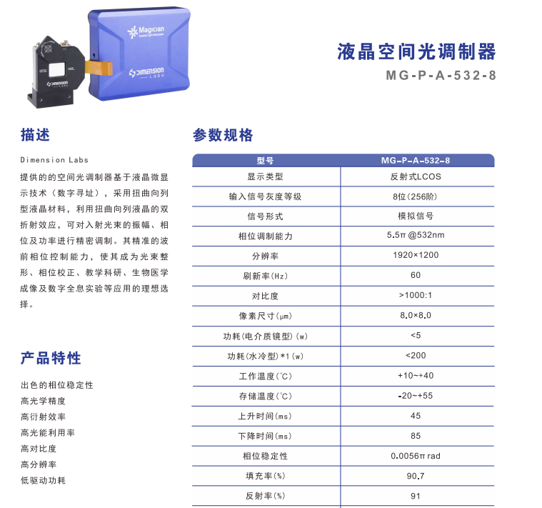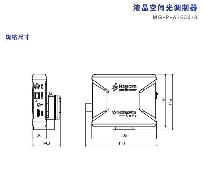 DIMENSION维度 MG-P-A-532-8 液晶空间光调制器 手机/微信:13682357549 13246646513 QQ:672776553 564600083 1903656788 Email:672776553@qq.com 564600083@qq.com