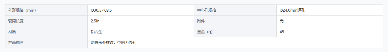 DIMENSION维度 DL-JTJT-SM1-2.5 透镜套筒