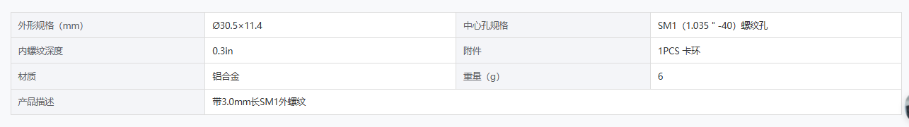 DIMENSION维度 DL-CTJT-SM1-0.3 透镜套筒