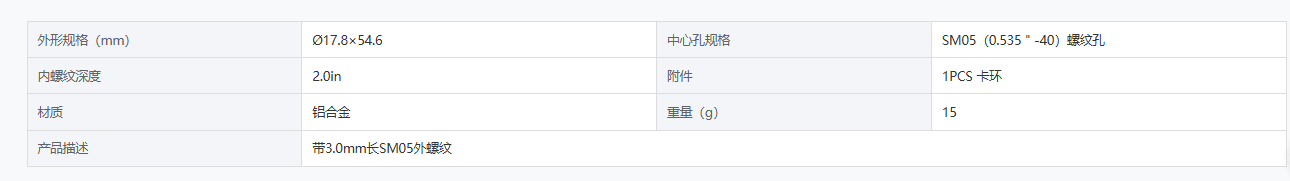 DIMENSION维度 DL-CTJT-SM05-2 透镜套筒