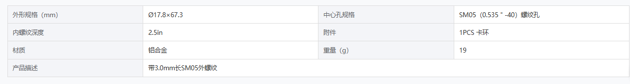 DIMENSION维度 DL-CTJT-SM05-2.5 透镜套筒