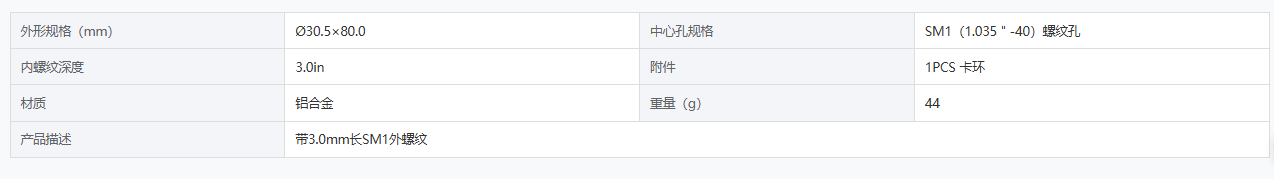 DIMENSION维度 DL-CTJT-SM1-3 透镜套筒