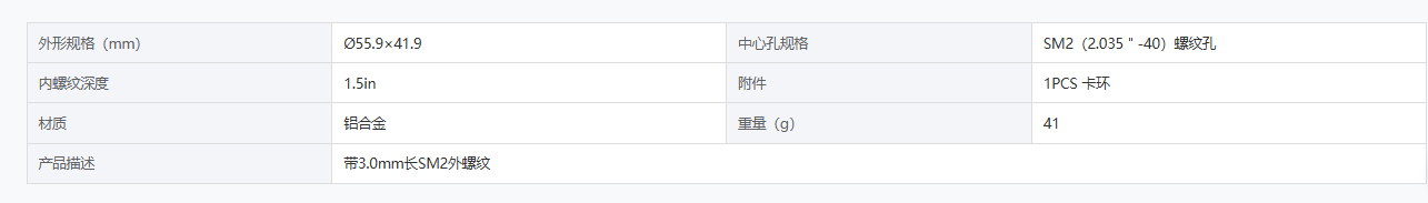 DIMENSION维度 DL-CTJT-SM2-1.5 透镜套筒