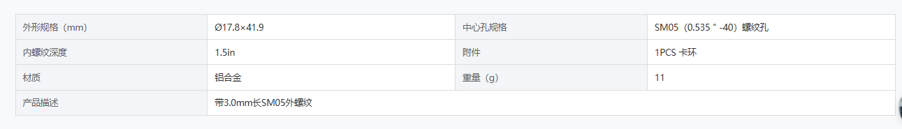 DIMENSION维度 DL-CTJT-SM05-1.5 透镜套筒