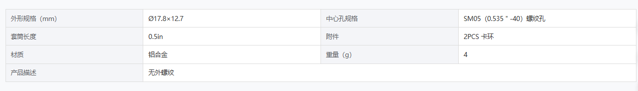 DIMENSION维度 DL-ZTJT-SM05-0.5 透镜套筒