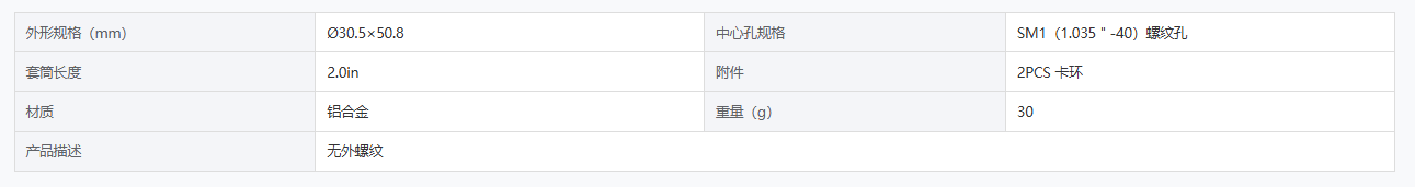 DIMENSION维度 DL-ZTJT-SM1-2 透镜套筒