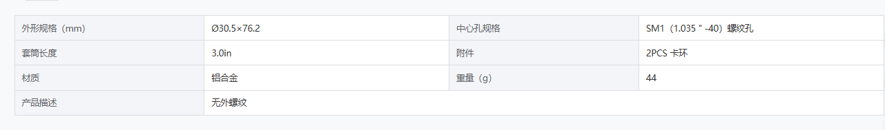 DIMENSION维度 DL-ZTJT-SM1-3 透镜套筒