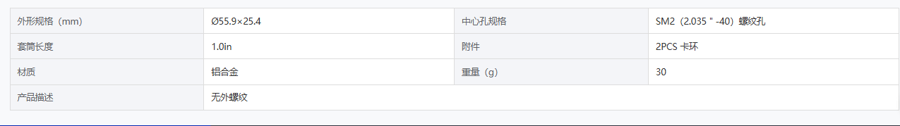 DIMENSION维度 DL-ZTJT-SM2-1 透镜套筒