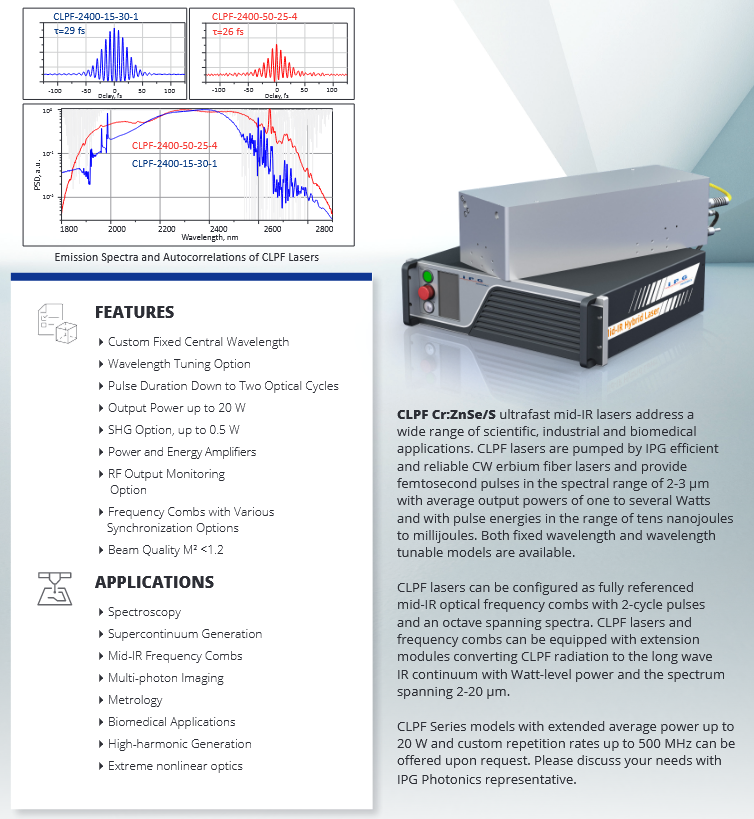 IPG阿帕奇 CLPF-2400-15-30-1 中红外混合激光器 手机/微信:13682357549 13246646513 QQ:672776553 564600083 1903656788 Email:672776553@qq.com 564600083@qq.com