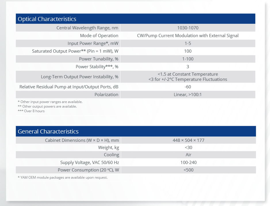 IPG阿帕奇 YAR-100-1064-LP-SF 连续光纤放大器