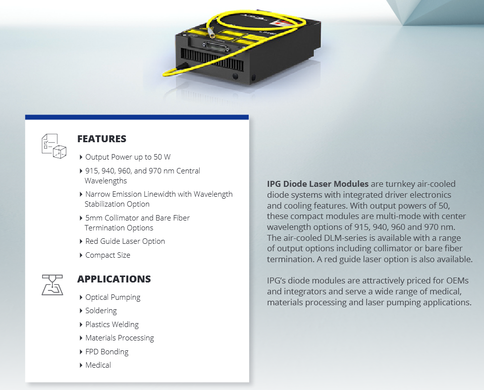 IPG阿帕奇 DLM-50 激光二极管 手机/微信:13682357549 13246646513 QQ:672776553 564600083 1903656788 Email:672776553@qq.com 564600083@qq.com