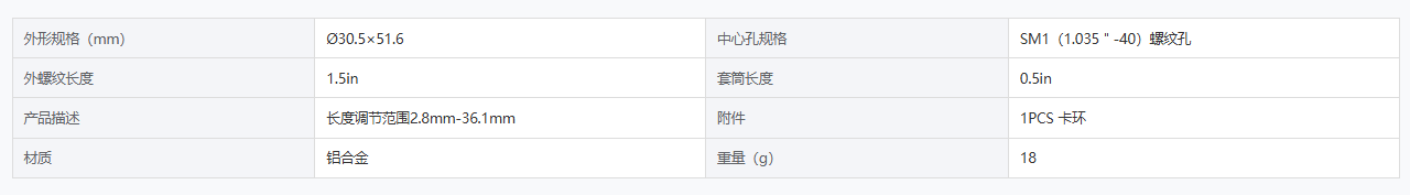 DIMENSION维度 DL-KTJT-SM1-1.5 可调式透镜套筒 手机/微信:13682357549 13246646513 QQ:672776553 564600083 1903656788 Email:672776553@qq.com 564600083@qq.com