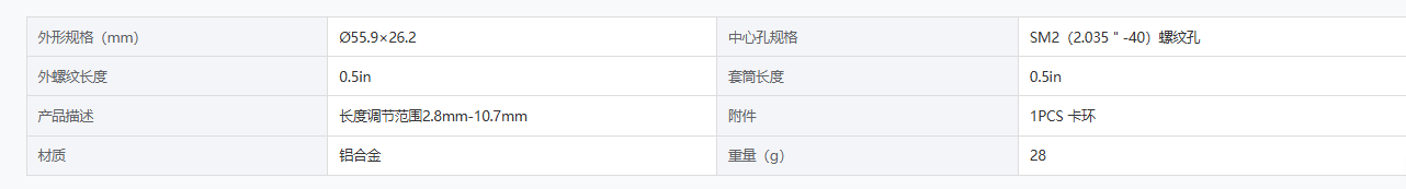 DIMENSION维度 DL-KTJT-SM2-0.5 可调式透镜套筒 手机/微信:13682357549 13246646513 QQ:672776553 564600083 1903656788 Email:672776553@qq.com 564600083@qq.com