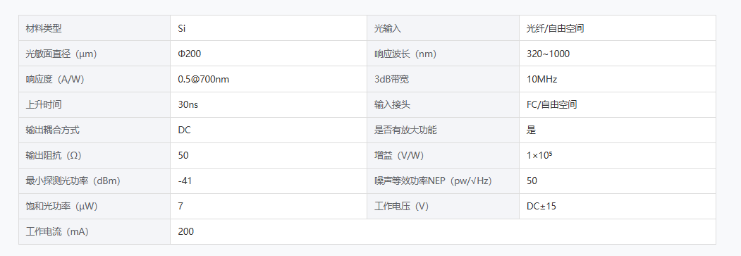 DIMENSION维度 DL-PDI-320-1000-10M-AE 硅基光电探测器