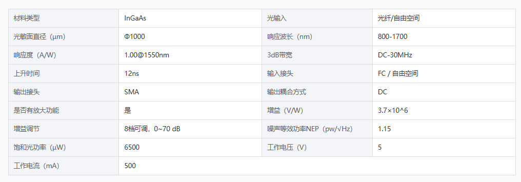 DIMENSION维度 DL-PDA-800-1700-30M-A 铟镓砷光电探测器