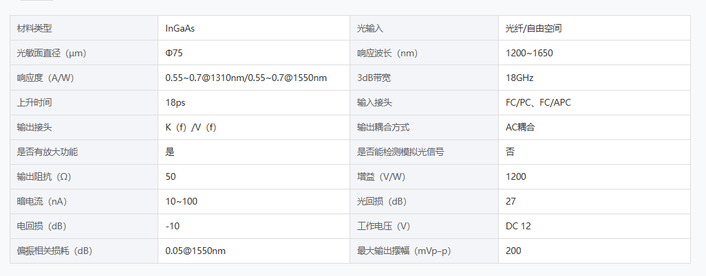 DIMENSION维度 DL-PDI-1200-1650-20G-E 铟镓砷光电探测器