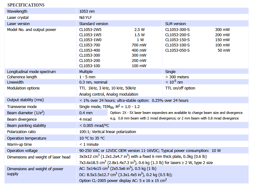 Crystalaser CL1053-1W0 单纵模连续激光器 手机/微信:13682357549 13246646513 QQ:672776553 564600083 1903656788 Email:672776553@qq.com 564600083@qq.com