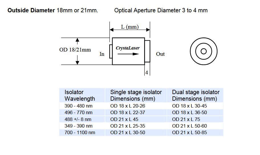 Crystalaser I-561-05 宽带双级光学隔离器 手机/微信:13682357549 13246646513 QQ:672776553 564600083 1903656788 Email:672776553@qq.com 564600083@qq.com