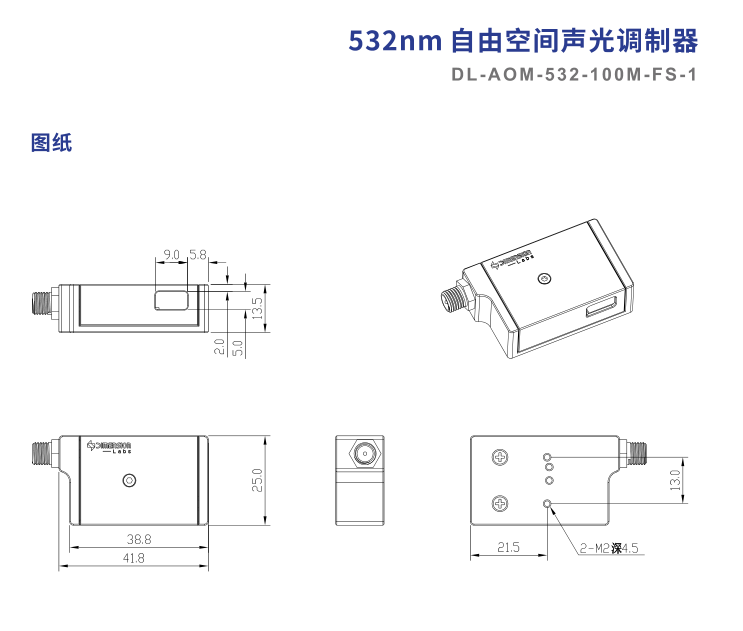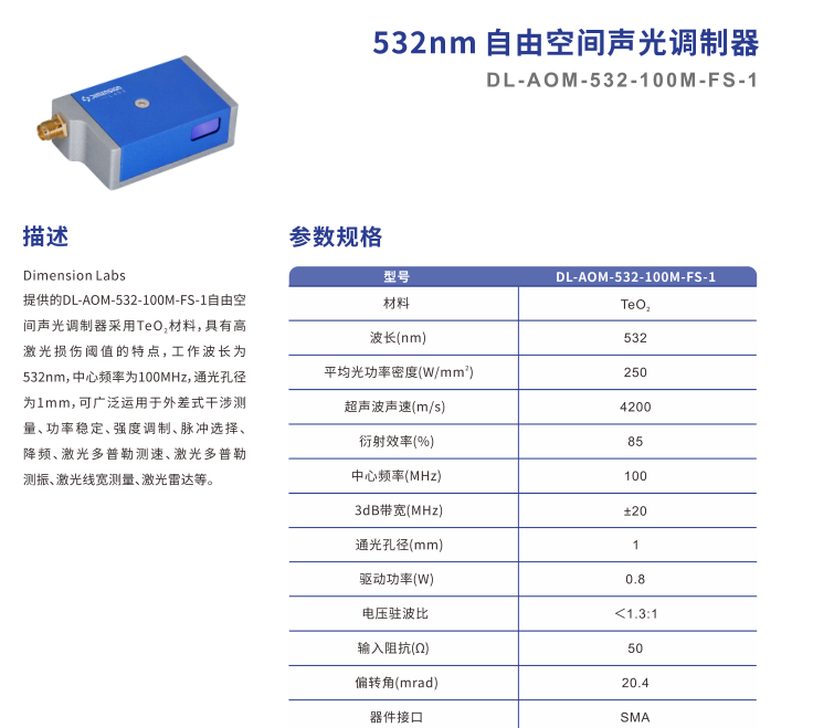 DIMENSION维度 DL-AOM-532-100M-FS-1 自由空间声光调制器 手机/微信:13682357549 13246646513 QQ:672776553 564600083 1903656788 Email:672776553@qq.com 564600083@qq.com