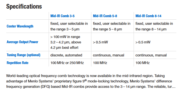 Menlo Systems Mid-IR Comb 稳定激光器 手机/微信:13682357549 13246646513 QQ:672776553 564600083 1903656788 Email:672776553@qq.com 564600083@qq.com