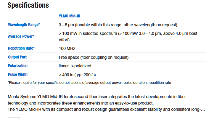 Menlo Systems YLMO Mid-IR 稳定激光器 手机/微信:13682357549 13246646513 QQ:672776553 564600083 1903656788 Email:672776553@qq.com 564600083@qq.com