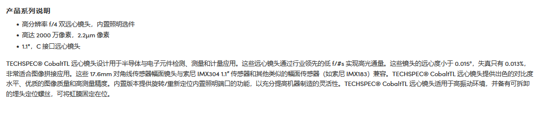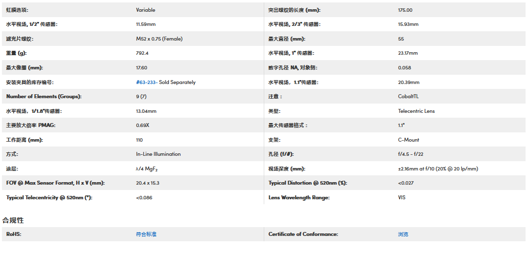 Edmund爱特蒙特 0.69X In-Line Illumination CobaltTL Telecentric Lens 远心镜头 电话:0755-84670052 0755-83317701 手机/微信:13682357549 13246646513 QQ:672776553 564600083 1903656788 Email:672776553@qq.com 564600083@qq.com