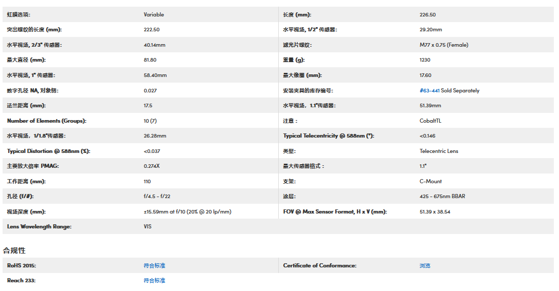 Edmund爱特蒙特 0.274X CobaltTL Telecentric Lens 远心镜头