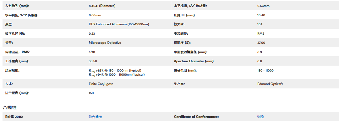 Edmund爱特蒙特 REFLX OBJ. 10X/0.23NA DUV FIN 反射物镜 电话:0755-84670052 0755-83317701 手机/微信:13682357549 13246646513 QQ:672776553 564600083 1903656788 Email:672776553@qq.com 564600083@qq.com