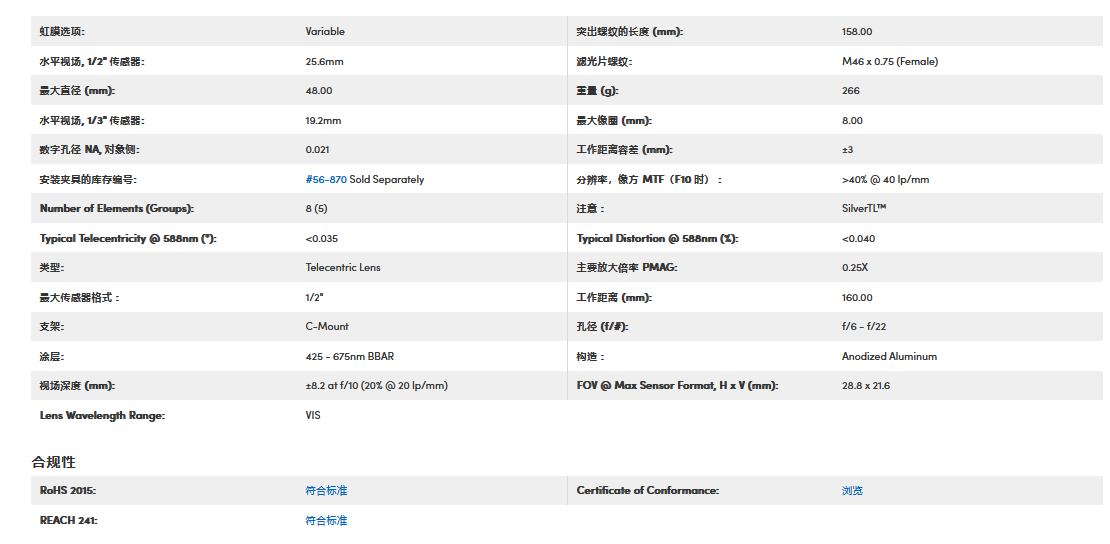 Edmund爱特蒙特 0.25x银系远心镜头 电话:0755-84670052 0755-83317701 手机/微信:13682357549 13246646513 QQ:672776553 564600083 1903656788 Email:672776553@qq.com 564600083@qq.com